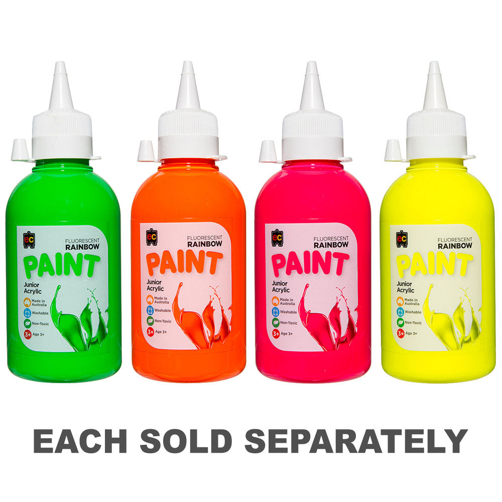 Introducing the Fluorescent Rainbow Junior Acrylic Paint by Educational Colours, proudly made in Australia. This water-based Junior Acrylic Paint stands out for its exceptional quality and versatility.